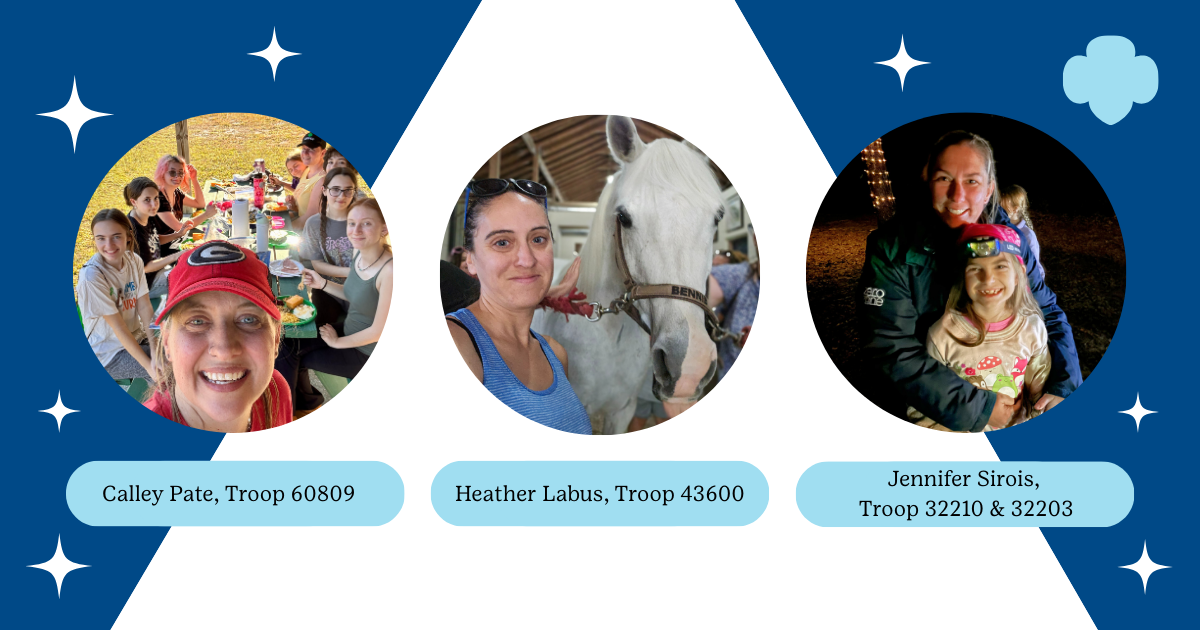 Meet Calley Pate, Heather Labus, and Jennifer Sirois. These three amazing troop leaders were nominated by their peers for their dedication and outstanding leadership. Troop leaders work hard every day to deliver a high-quality Girl Scout Leadership Experience for girls.